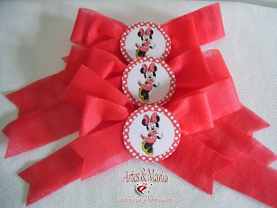 Laço duplo de tnt com tag tema Minnie personalizado com nome da criança.